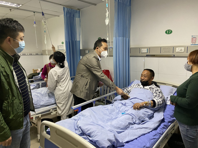 3月27日上午,大英水司黨支部書(shū)記、總經(jīng)理劉松果到大英縣人民醫(yī)院探望慰問(wèn)因病住院結(jié)對(duì)幫扶貧困戶向東,代表公司送去愛(ài)心資助款,并以個(gè)人名義給予捐助。
