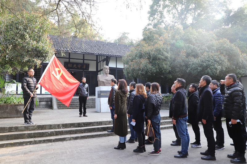 隨后,在吳玉章紀(jì)念碑前,全體黨員面對(duì)黨旗重溫入黨誓詞:“我志愿加入中國(guó)共產(chǎn)黨,擁護(hù)黨的綱領(lǐng)……”以錚錚誓言再次做出共產(chǎn)黨員的鄭重承諾。