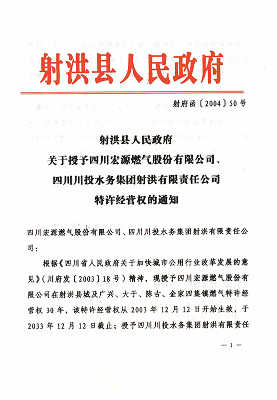 射洪水司、宏源燃?xì)馓卦S經(jīng)營權(quán)