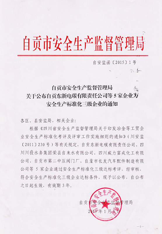榮縣水司安全標(biāo)準(zhǔn)化證書