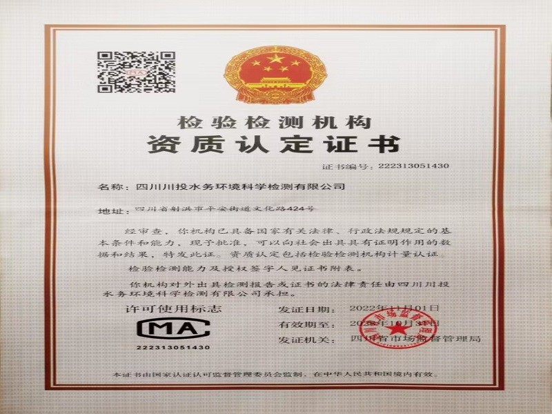 射洪水司CMA檢測資質(zhì)證書