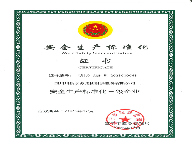 射洪水司安全標(biāo)準(zhǔn)化證書