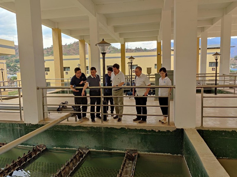 2021年5月12日,川投集團安全環(huán)保部部長陶世賢一行蒞臨四川川投船重環(huán)境科技有限公司(以下簡稱川投船重)調(diào)研一枝山污水處理廠試運行情況并檢查安全環(huán)保工作。川投船重副總經(jīng)理馬銘偉、建設(shè)安全部經(jīng)理李軍、綜合管理部經(jīng)理張梅等相關(guān)人員陪同調(diào)研。